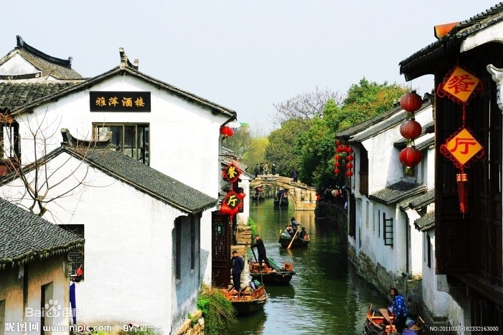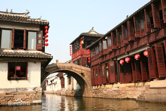 始建于1086年的古镇周庄,因邑人周迪功先生捐地修全福寺而得名,春秋时为吴王少子摇的封地,名为贞丰里,是隶属于江苏省昆山市,位于上海交界处的一个典型的江南水乡小镇,系江南六大古镇之一。于2003年被评为中国历史文化名镇,最为著名的景点有:沈万三故居、富安桥、双桥、沈厅、怪楼、周庄八景等。富安桥是江南仅存的立体形桥楼合壁建筑;双桥则由两桥相连为一体,造型独特;沈厅为清式院宅,整体结构严整,局部风格各异;此外还有澄虚道观、全福讲寺等宗教场所。周庄有"中国第一水乡"之美誉。首批5A级景区。