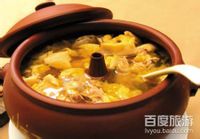 云南具有独特风味的滋补名菜,传统云南菜的代表,因用汽锅蒸制而得名。由于汤汁是蒸汽凝成,鸡肉的鲜味在蒸的过程中丧失较少,所以很好地保持了鸡的原汁原味。鸡块肉质鲜嫩,色泽金黄,汤汁甘甜醇香,鲜美无比,有补虚养身、补血、健脾开胃的功效。