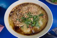 稀豆粉是豌豆磨细成面粉状后加入生姜等作料熬制而成。口味滑糯香辣,价廉物美。稀豆粉煮好了要马上吃,吃时可以拌米线、卷粉,或把烧饵块、油条撕成块放进稀豆粉里,撒上少许葱花、辣椒面、花椒面等,喝一口,咂咂嘴,真爽!