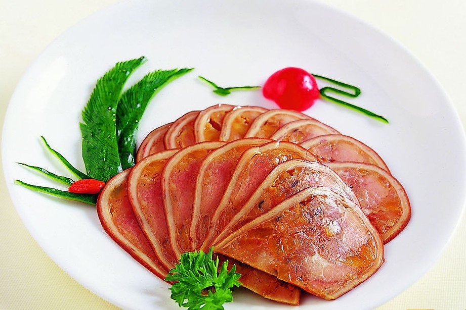 南京香肚是南京著名特产之一,创于清同治年间。其形如苹果,娇小玲珑,老南京俗呼之为"小肚"。它肉质紧结,红白相间,吃起来香嫩爽口,略带甜味,既是宴席上的一道名菜,也是日常生活中的佐食佳品。南京香肚相传有120年历史,清同治时即闻名全国。形如苹果,便于携带,皮薄如蝉翼,肉质细嫩,红白相间,风味独特,是一道名菜,也是佐餐佳品。